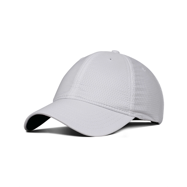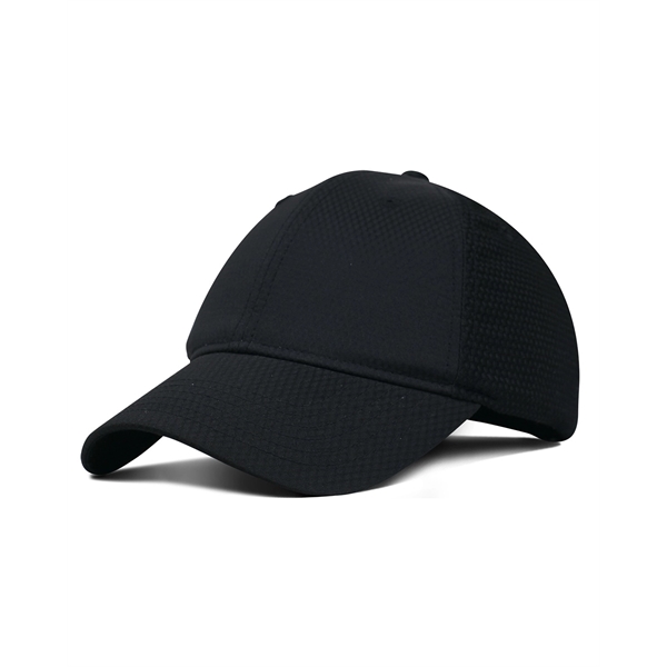 95% polyester / 5% spandex;Moisture-wicking sweatband and inner front panels; Semi-pro stitching; Unstructured low-profile; High Tech hook and loop closure;