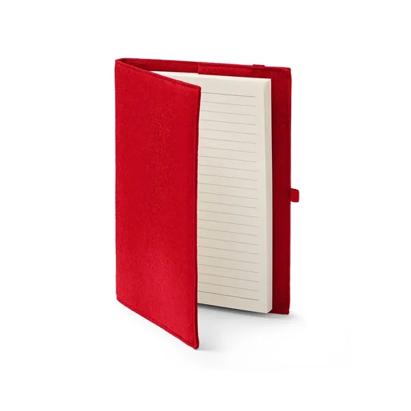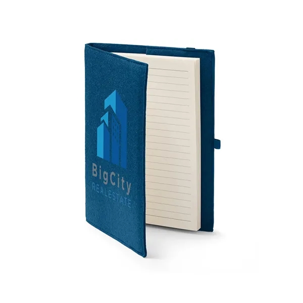 A Prime Line® Exclusive!** Refillable journal with cover made from Recycled Felt. Includes 80 cream sheets (160 pages) of 80 GSM wide-ruled Recycled Paper. Silk ribbon bookmark matches cover color. Black elastic closure and pen loop. Paper can be replaced by those found in your local office supply store (approx. 5.5"W x 7.8"H).