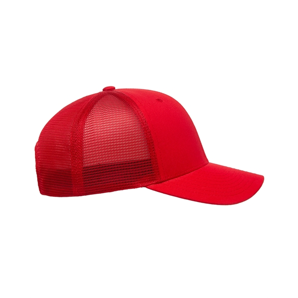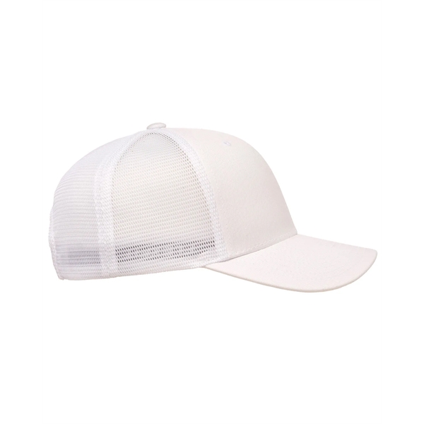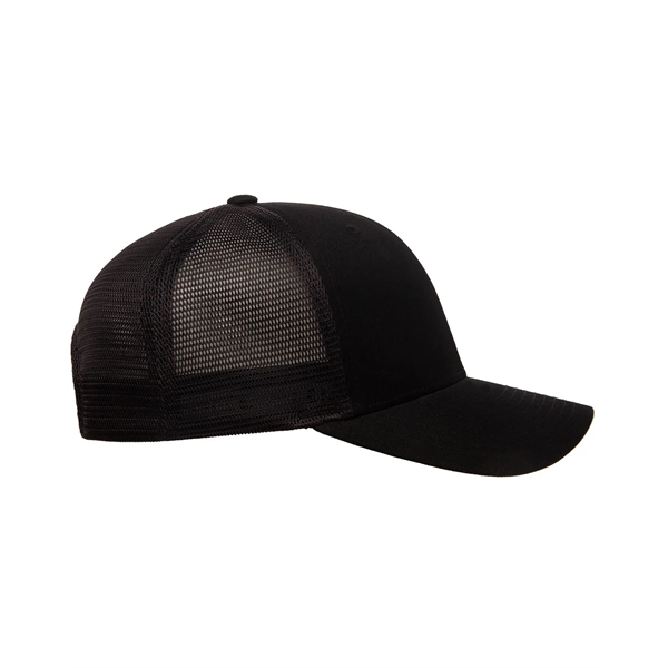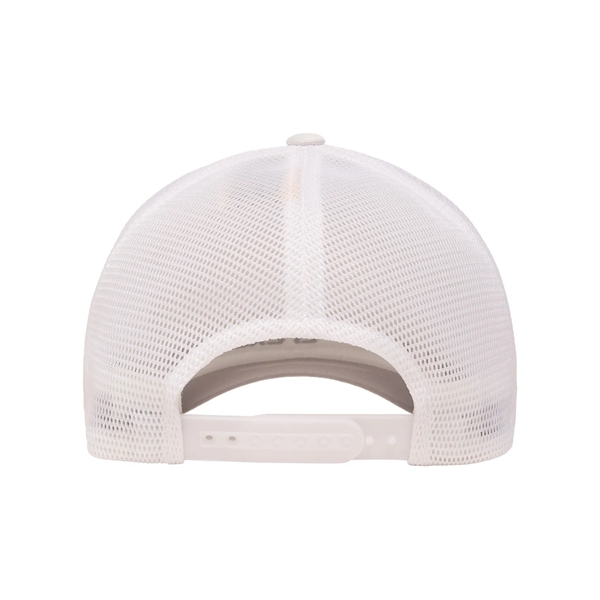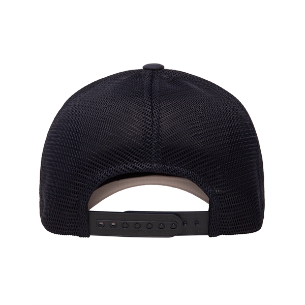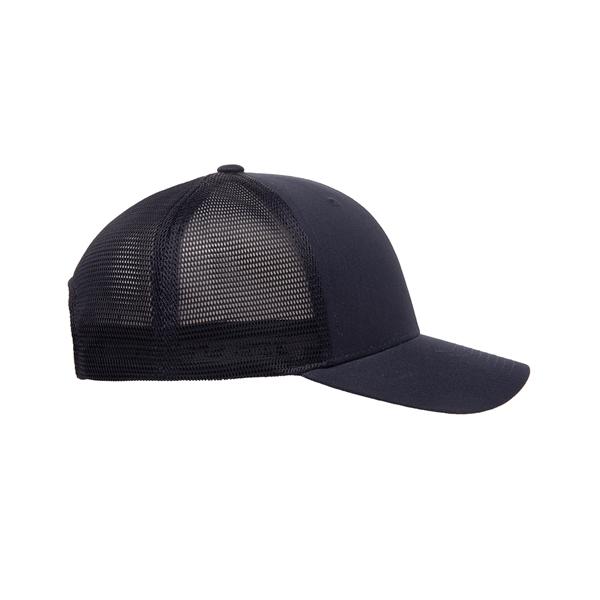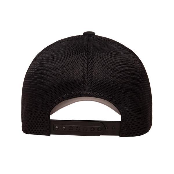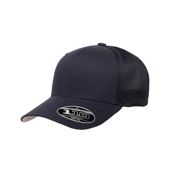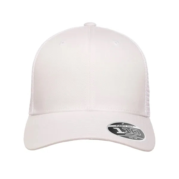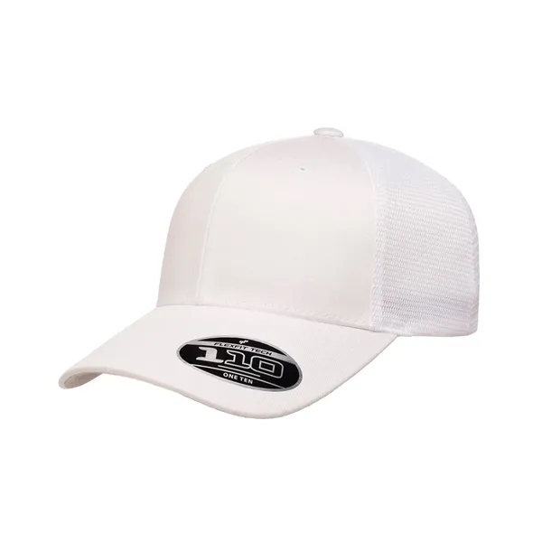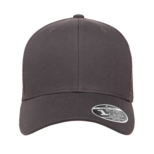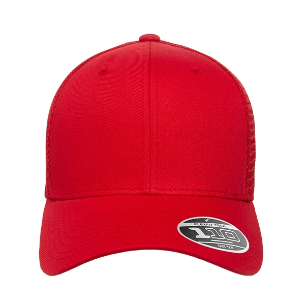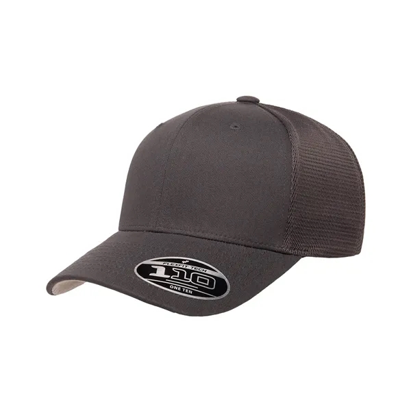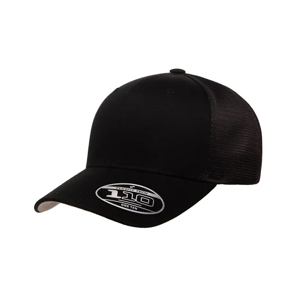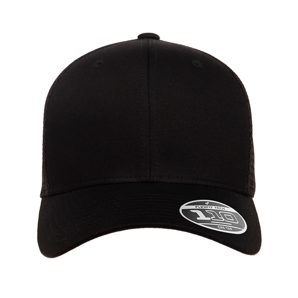 56% polyester, 44% cotton;adjustable + Flexfit® tech = Flexfit 110® cap; mesh cap for utlimate comfort and ventilation; premium Flexfit 110® fabric sweatband; 6-panel, mid profile, structured; plastic snapback closure; permacurv® visor; silver undervisor, 8-row stitching on visor;