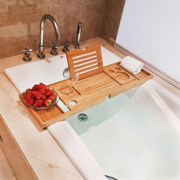 This bamboo bathtub tray fits most tubs with extendable handles up to 41 Inches. This all-in-one tray includes a wine glass holder, book tablet holder, candle mug slot, phone slot, two removable side trays.This shelf is 75 cm long and is suitable for bathtubs up to 70- 70 cm the following in width - just put it on the bathtub and use it as a storage shelf. The bathtub tray is very light, beautiful and has a rustic charm - every bathroom is great - upgrade your bathtub with this cute accessory! Quantity more than 100, the price will be by sea.