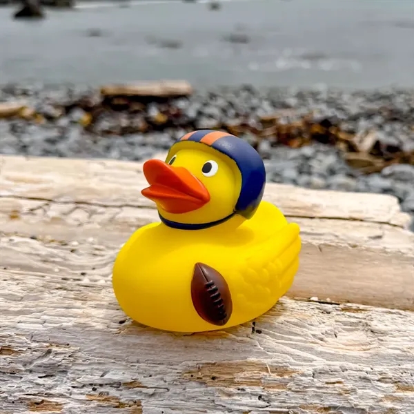 Score a touchdown with our football player rubber duck! This sporty duck, complete with a helmet, brings a splash of gridiron excitement to your bath. Perfect for football fans of all ages, it adds a playful and energetic touch to your soak. Make every bath a winning play with this fun and spirited companion!