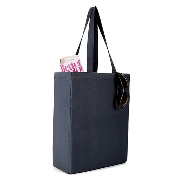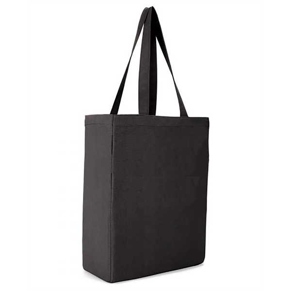 9 oz. cotton canvas;22″ handles; Double-reinforced open top; Bound inner seams; CPSIA compliant; 9″w x 10″h approx. front and back imprint areas; 5 1/2″ diameter max. front and back embroidery areas; Product Size: 11″l x 15″h x 5″w;