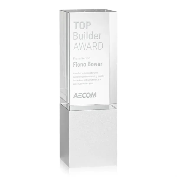 The freestanding Glencoe award embodies contemporary sophistication with its striking rectangular silhouette. Crafted with a pristine optical crystal top and a sleek brushed aluminum base, this award achieves a perfect balance of elegance and modern design. Ideal for recognizing excellence, the Glencoe makes a bold and timeless statement of achievement.