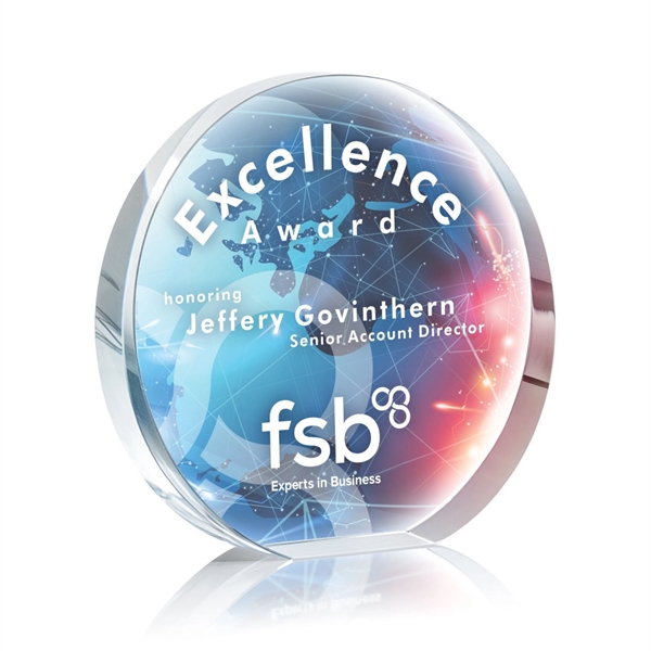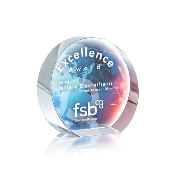 A beautifully rounded optical crystal award. Let your message POP with full color VividPrint!