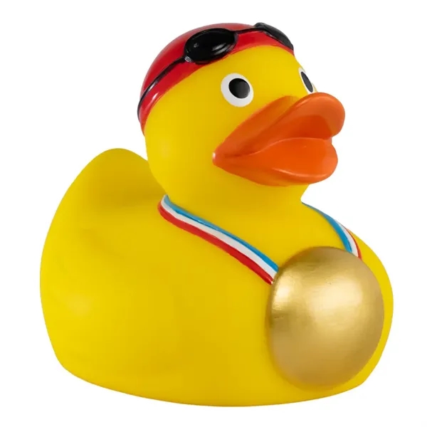 Celebrate victory with this gold medal-themed rubber duck! Perfect for champions and anyone who loves a playful twist, this charming rubber duck is ready to bring a smile to your face. Customize it with your brand name, logo, or message for a memorable promotional item that stands out. Make a splash with this unique and entertaining gold medal-themed rubber duck!