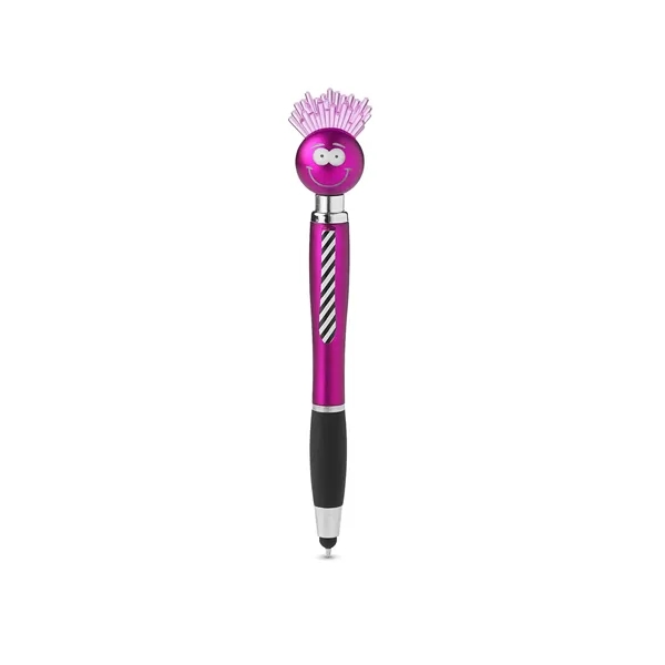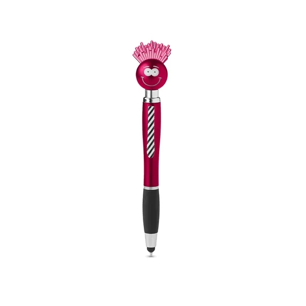 A Prime Line® Exclusive!** Light-up stylus pen made of ABS Plastic with PVC "hair" and striped tie clip. LED lights up smiling goofy face. Soft Silicone tip for use with touchscreen devices. Includes black, medium-point ink. Uses 3 non-replaceable button cell batteries (LR41) (Battery blocker must be removed prior to use).
