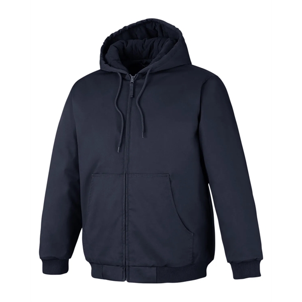 8 oz./yd2 / 273 gsm, 65% polyester, 35% cotton twill; Polyester taffeta lining with diamond quilting; 140 gsm poly fill;Matching drawcord at neck; Dyed-to-match zipper and twill zipper pulls; Multiple inner pockets for storage; Matching rib trim at cuff and hem; EZEM™ embroidery access;