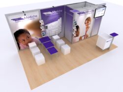 Check . . . Check . . . Check. These inline and island exhibits have it all! Large tension fabric graphics, presentation area. large monitor and iPad capability, massive storage, and modern streamline design. The islands even include conference rooms and two-sided lightboxes. Whether you’re looking for 20 ft. inline, or a 20 ft. or 30 ft. island, these designs will maximize your trade show marketing impact at prices that will amaze.