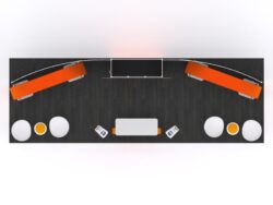 Donna Summer got it right — You work hard for the money. So why buy three exhibits when one stunning display will do triple duty? The VK-5128, VK-3006, and VK-2968 combine a dramatic structure, high impact graphics, and practical components into reconfigurable island and inline exhibits. The exhibits include distinctive Aero rings with pillowcase graphics, workstations with storage, headers, and a large reception counter. There’s even a full-size closet, a rare luxury in an inline exhibit. The larger graphics are vibrant tension fabric, which is lightweight, durable, and affordable. And if that’s not enough, there are two MOD-1336 portable tablet stands for an iPad, or choose an alternative tablet version.