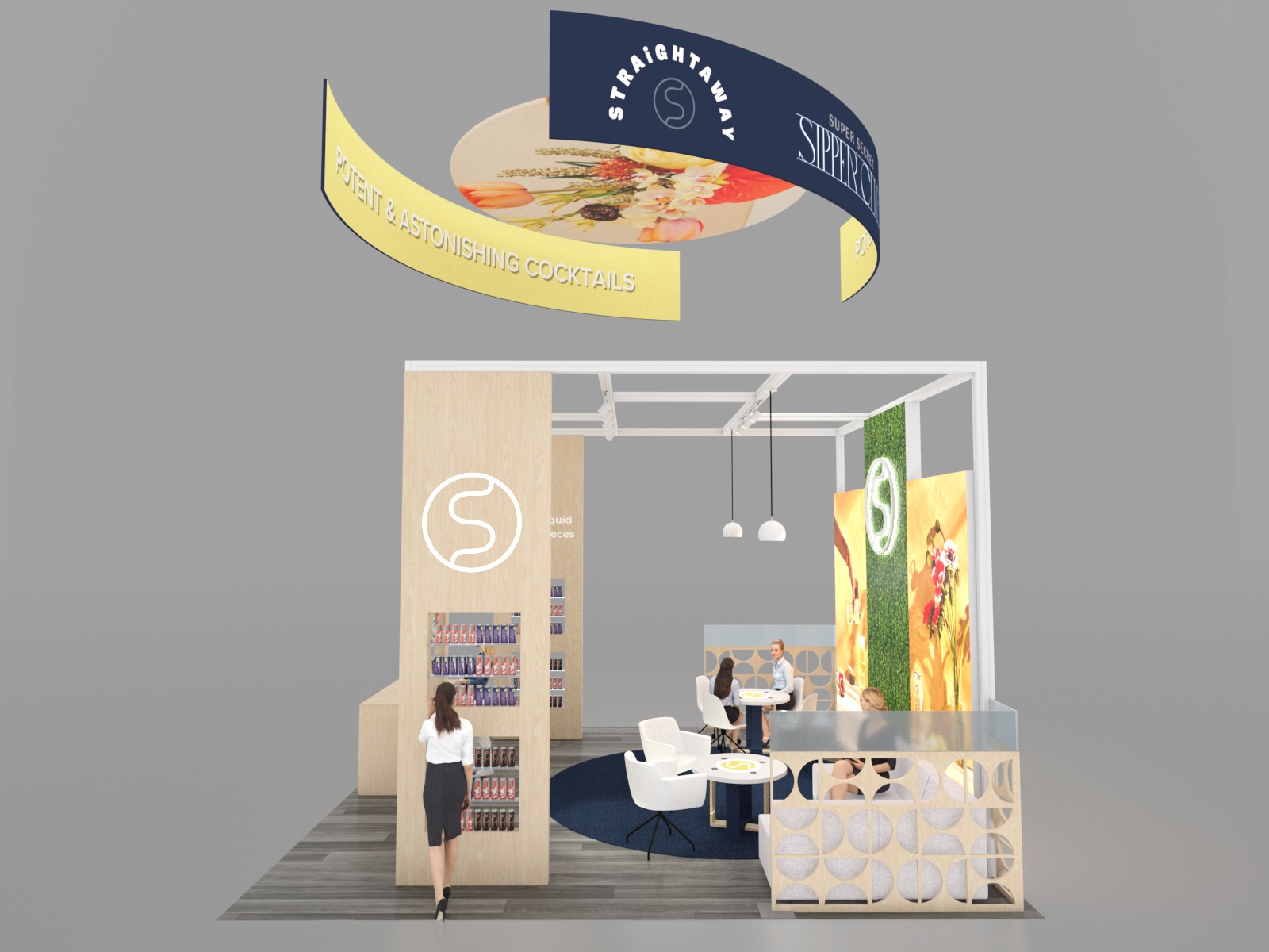 In a trade show environment increasingly dominated by video, lights, and hi-tech, an island design that evokes casual and comfortable is a welcome oasis on the show floor. The VK-5183 and VK-5186 embrace a relaxed vibe with casual seating meant for lingering conversations with attendees. In addition to the two seating areas, the design features multiple double-sided lightboxes with vibrant fabric graphics, iPad swivel mounts for demos, and ample product displays shelving. The overhead hanging signs are guaranteed to attract attention drawing attendees to the booth from throughout the hall.