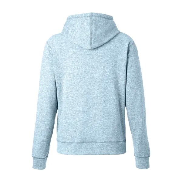 7.4 oz., 90% polyester, 10% spandex brushed heathered fleece;Tonal flatlock stitching throughout; Flat DTM drawcords w/ metal crimp; Self fabric cuffs and waistband; Welt side pockets; Tear away label; Ladies' fit; Due to the unique fabric knitting of this garment, it is typical to see color and shade differences. Variations may occur in each individual item;