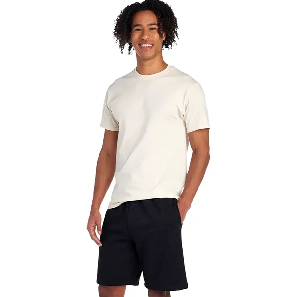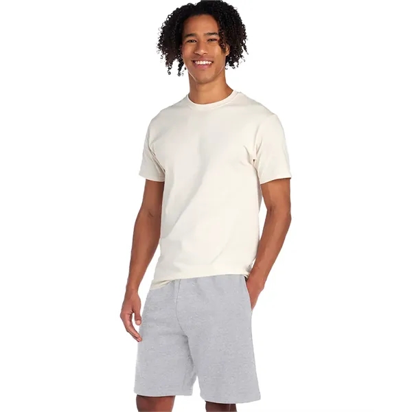 Warmer days are waiting so prepare for them with this pair of adult shorts! This item is available in a variety of different colors and sizes and is made of 50% cotton and 50% polyester material. Also featured are a pill-resistant fleece made with sustainably sourced USA-grown cotton, a three-needle covered elastic waistband with an inside drawcord, side-entry jersey-lined pockets, a 9" inseam, and a tear-away label.