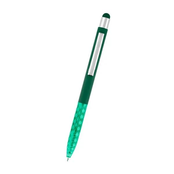 Plunger Action. Made Of Recycled Aluminum. Smooth Rubberized Finish. Unique Grip Design. Stylus On Top.
