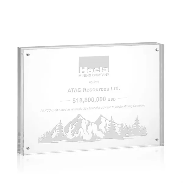 The freestanding Kirkham Award is a simple yet timeless token of appreciation that captures the essence of achievement. Four silver magnetized pins adorn each corner of the acrylic rectangle, adding a touch of refinement and securing the structure. Shipped in a premium quality presentation box.