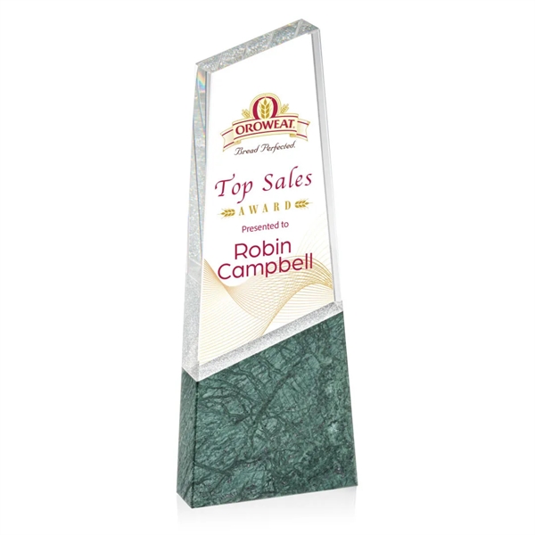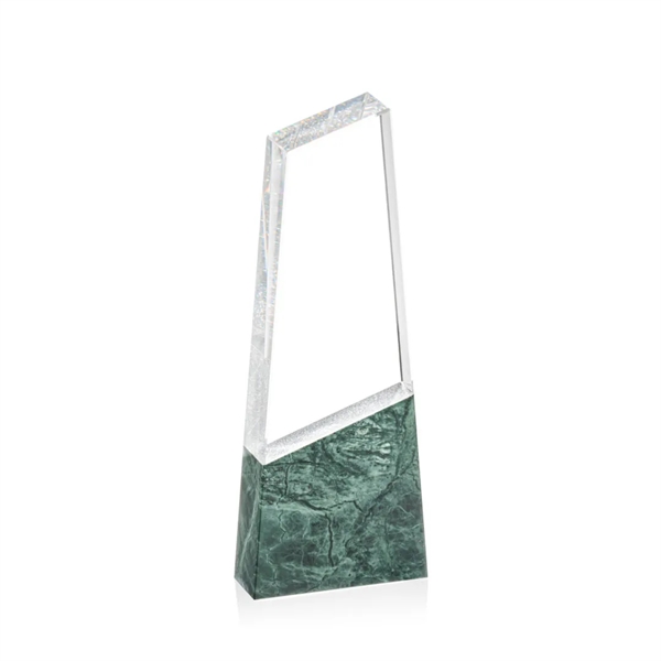 The Lamont Tower VividPrint™ Award is a striking monument perfect to recognize excellence! This unique freestanding award features beautiful green granite that seamlessly transitions to optical crystal. A special metallic silver coating is applied between the granite and crystal that reflects a sparkling and glittery image throughout the award. Second position imprint on base is optional.
