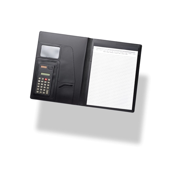 No matter where their workday takes them, they'll be sure to bring your brand along for the ride with the promotional look of these Leather Journal Portfolio with Notepad & Calculator. This promotional opportunity measures 9.5"W x 12.5"H and is made using PU Leather. It features an Inside Phone Pocket, 4 Die-cut card pockets, a File Pocket, a pen loop (pen not included), and 20 pages of ruled memo pad. From the meeting room to the classroom, this portfolio is sure to deliver.