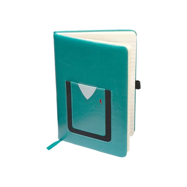 A Prime Line® Exclusive!** Medical-theme journal made of soft Thermo PU and featuring elastic smartphone pocket on front cover. Includes approx. 80 lined sheets of 80g cream paper. Features elastic pen holder (pen sold separately) and ribbon bookmark. Front smartphone pocket measures approx. 3.74″w x 4.17″h.