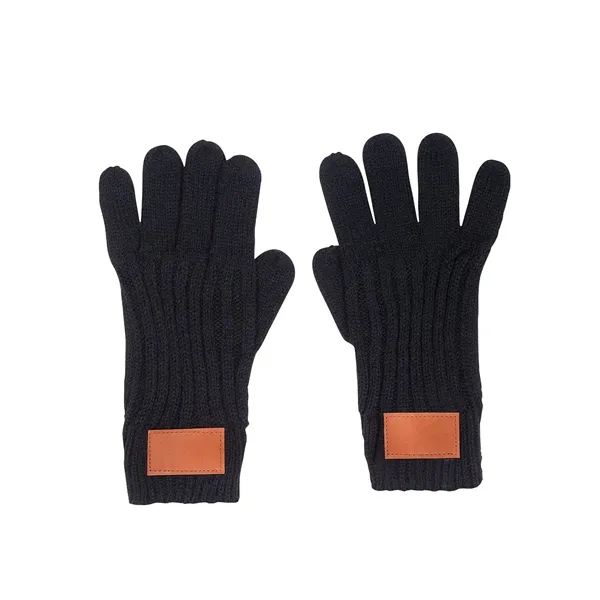A Prime Line® Exclusive!** Acrylic rib knit gloves with PU patch on at each wrist for deboss. PU patch measures: 1.96"w x 1.18"h. Hand-wash only.