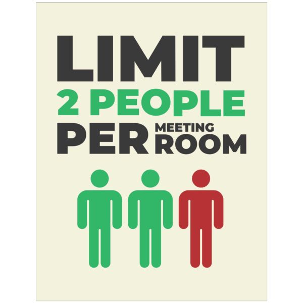 - Poster features the message “Limit 2 People Per Meeting Room”