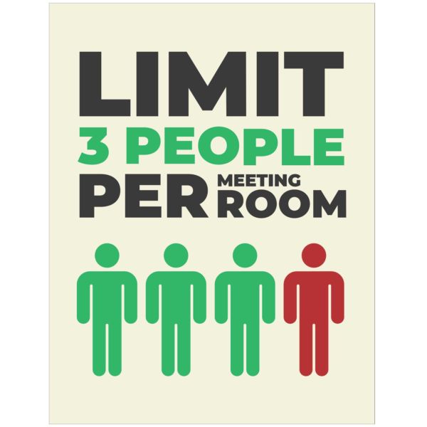 - Poster features the message “Limit 3 People Per Meeting Room”