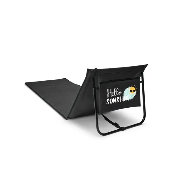 Relaxing lounger made of 600D Polyester main body, 210D backing + 16mm Steel frame. Zipper pocket on back for book or small snack approx. 14″w x 10″h. Folds for easy carrying with handle, adjustable carry strap and hook and loop type fastener. Adjustable backrest. Open/in use item measures approx. 59.25″l x 21″w. Hand-wash only. Do not iron. Recommended weight tolerance: 330 lbs.