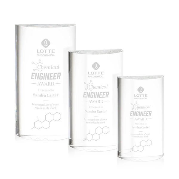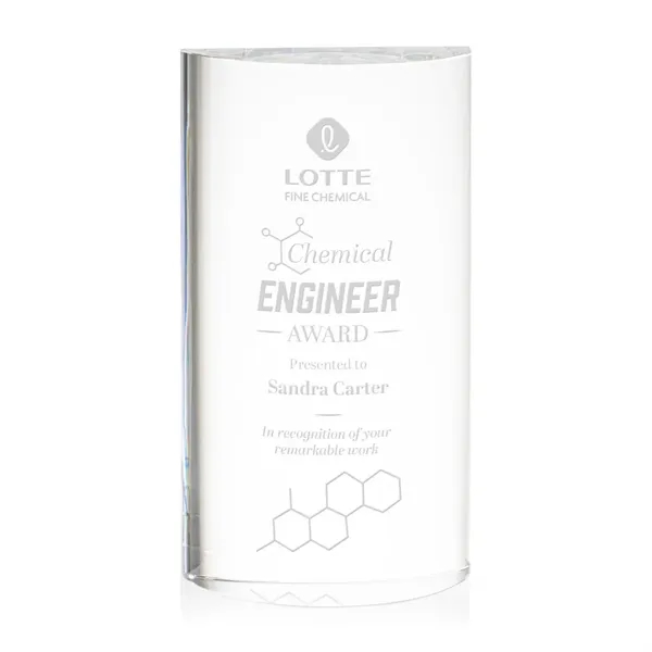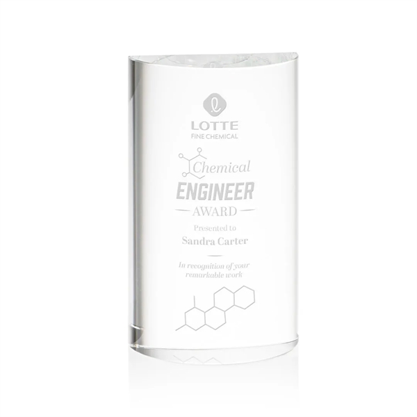 The Optical Crystal Lytton Award is designed to captivate and honor outstanding achievement! As your eyes travel toward the front, marvel at the graceful curvature that gradually expands to create a mesmerizing dome-like effect. Whether it's celebrating outstanding leadership, or recognizing exceptional contributions, the Lytton Award stands as a timeless testament to success.