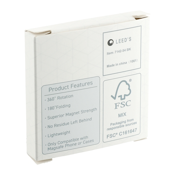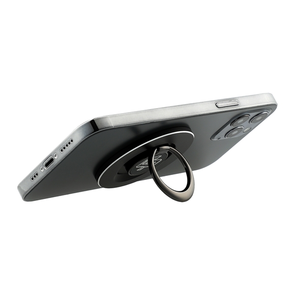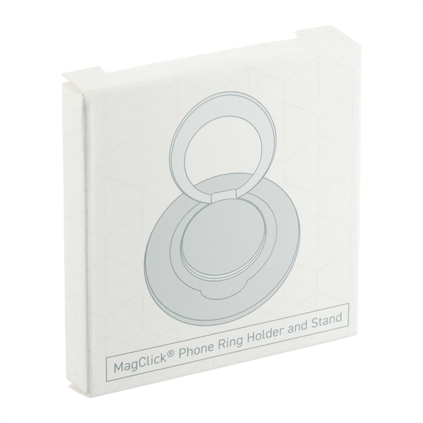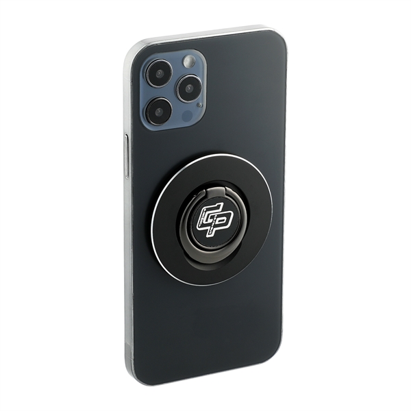Are you looking for an easy and convenient way to hold your phone without using something that may not be trustworthy? Then look no further and start using this MagClick® ring holder and stand. This item utilizes magnetic technology that can attach to the back of iPhone 12 and 13 models or other MagSafe cases. The ring on this holder can flip 180 degrees and rotate 360 degrees to allow you to find the best viewing position for your phone. You can also take off this ring holder without leaving behind any annoying residue. Hold up your business to new standards when you customize this MagClick® holder.