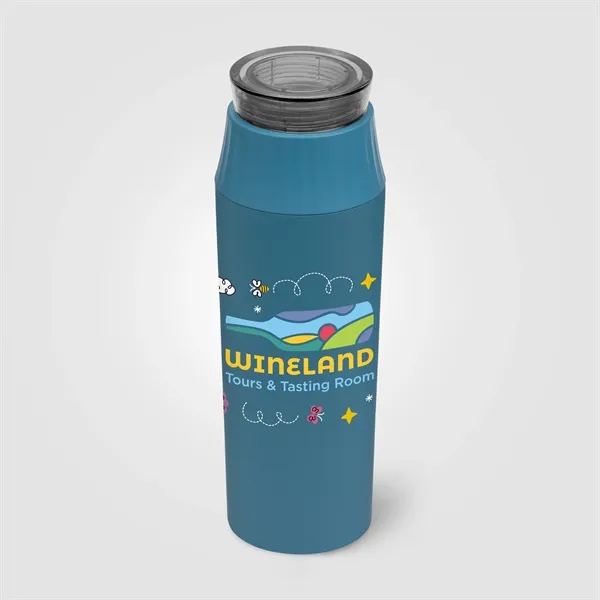 Majesty Recycled Stainless Steel Leakproof Lid Bottle - 20 oz. is designed with double-wall vacuum insulation, keeping drinks hot for up to 6 hours and cold for up to 24 hours. Made from recycled stainless steel (304), the bottle features a sleek powder coating finish and a leakproof screw-on lid. It has a dual-opening design, the top opens for easy sipping, with a wider opening just below, for easy filling and cleaning. With a capacity of 20oz , it's perfect for both hot and cold beverages. This bottle is BPA-free and not suitable for dishwashers or microwaves.