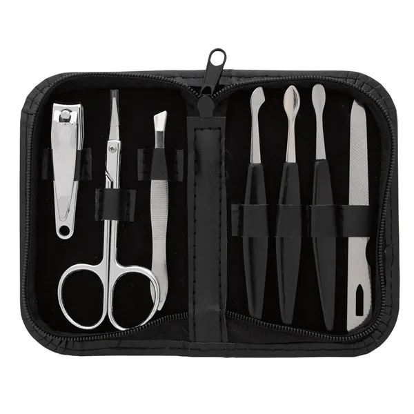 This travel-ready manicure set includes everything you need to keep your nails in great shape. The compact zip-around case holds nail clippers, scissors, tweezers, 3 nail pushers, and a nail file.