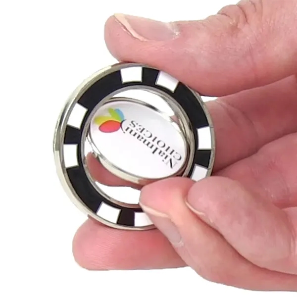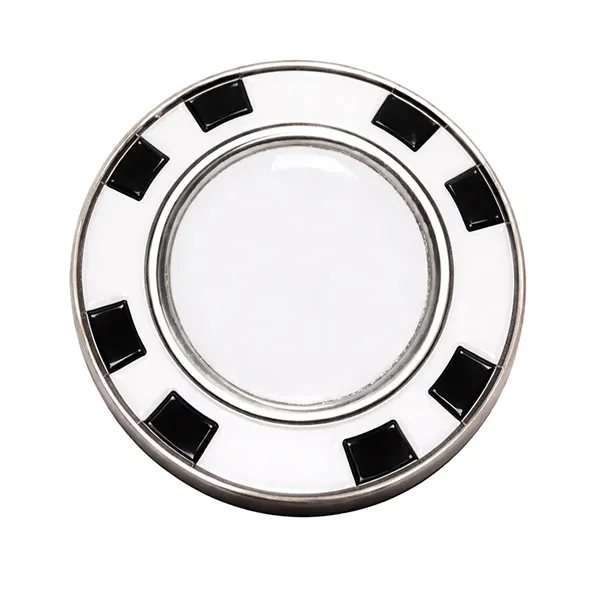 The Marker Mate design utilizes precise magnetic technology to fully suspend the ball marker inside the poker chip. Simply press the ball marker out of the center and mark your spot. Includes two imprint location for multiple sponsorship opportunities. Price includes a full color imprint on both sides and is packaged in a black velvet pouch.