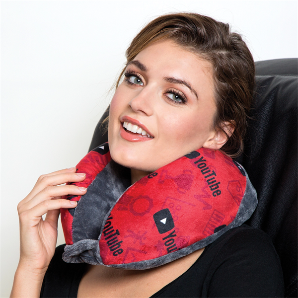 The next time you travel, head out in comfort and style with this memory foam travel pillow! It measures 11" x 10" x 4.5" and is made with a microfiber polyester lining and an adjustable snap closure. Designed with an innovative ergonomic shape for maximum comfort, the memory foam conforms to the head and neck so you can rest easy while sitting up in an airplane, car or train. Add a full color sublimation imprint and hand these out to your employees and colleagues at the next corporate event!