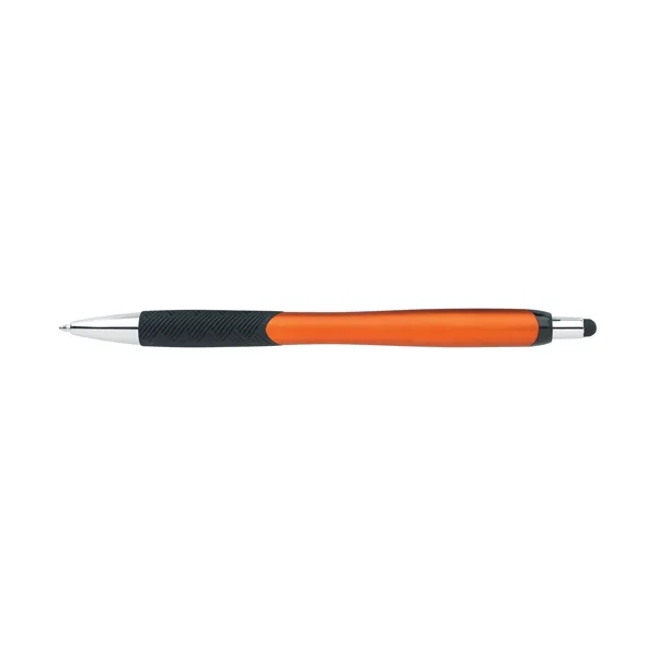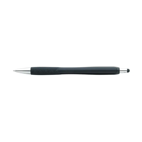 The slim metallic barrel and shiny chrome accents on this multifunctional pen make it shine. The patterned rubber grip makes jotting a note a breeze, and the stylus provides another level of versatility.