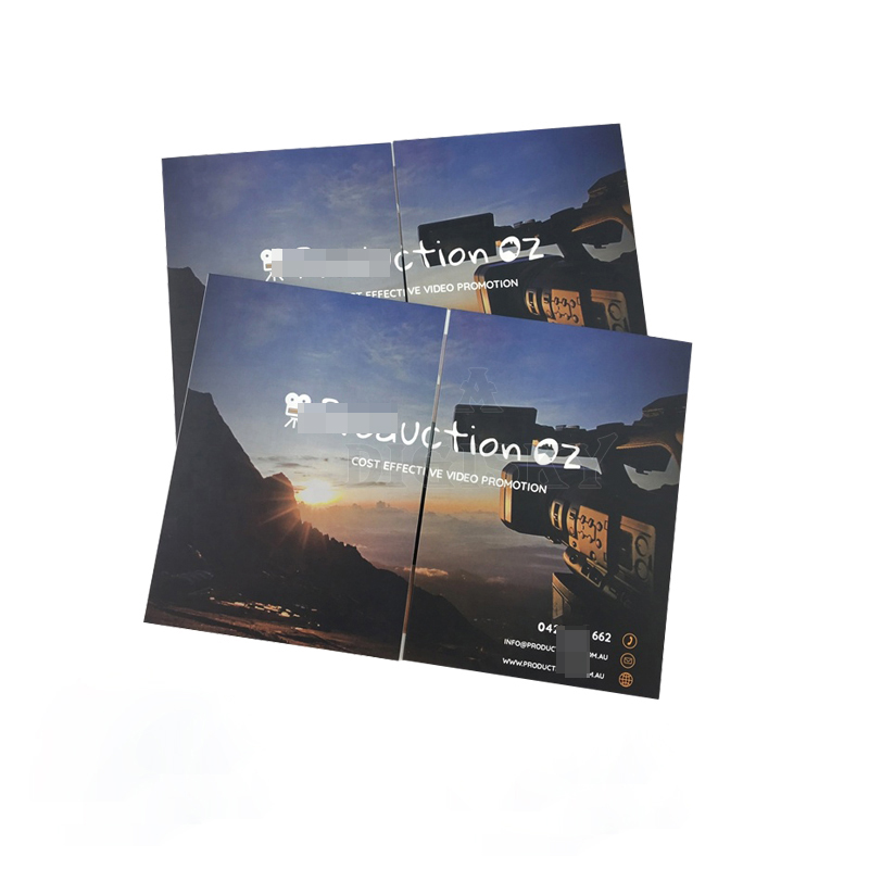 Professional middle-fold softcover video brochure with 7″ IPS touchscreen. Magnetic auto-play, 4-zone content display. Optional premium printing finishes.