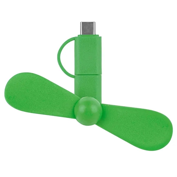 Stay refreshed on-the-go with our Mini USB Cellphone Fan, the perfect companion for your smartphone activities. Whether chatting, watching videos, or gaming, this USB-powered personal fan ensures you keep cool. Measuring 3 1/2" x 1 8/10" x 1 1/2", it features thermoplastic blades that are soft and safe to the touch, delivering a strong breeze without compromising safety. The fan effortlessly plugs into your phone thanks to a versatile 4-in-1 adapter compatible, providing immediate relief. Available in seven vibrant colors, this fan also offers the opportunity to customize the blades with your organizational or company logo, emblem, or message, making it a standout branded promotional item. Keep cool and promote your brand with style!