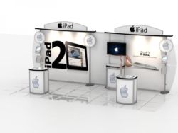 Talk about a split personality. The MOD-1288 is both a portable trade show pedestal with locking storage and an iPad kiosk. The modular pedestal comes with an internal shelf and a unique iPad counter insert feature. The iPad mounts below the counter top, and the base is CNC cut for power and data cables. Your tablet mounts flush with the counter top, but is surrounded by a lip which prevents anyone from casually removing it. In short . . . it’s an attractive, secure, and inexpensive addition to most counters or workstations.