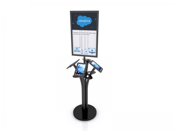 The Port Land iPad Kiosks™ are anything but dull. They are innovative, lightweight, and affordable. The locking clamshell frame rotates with the unique Swivel Stop™ feature, allowing you to seamlessly reposition your iPad to Portrait or Landscape mode. The kiosks are made from durable engineered aluminum and assembly in minutes. There are multiple single iPad kiosks. The MOD-1334 is designed for two iPads and the MOD-1338 for four iPads. All have integrated cord management.