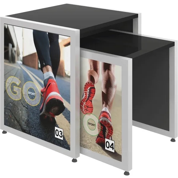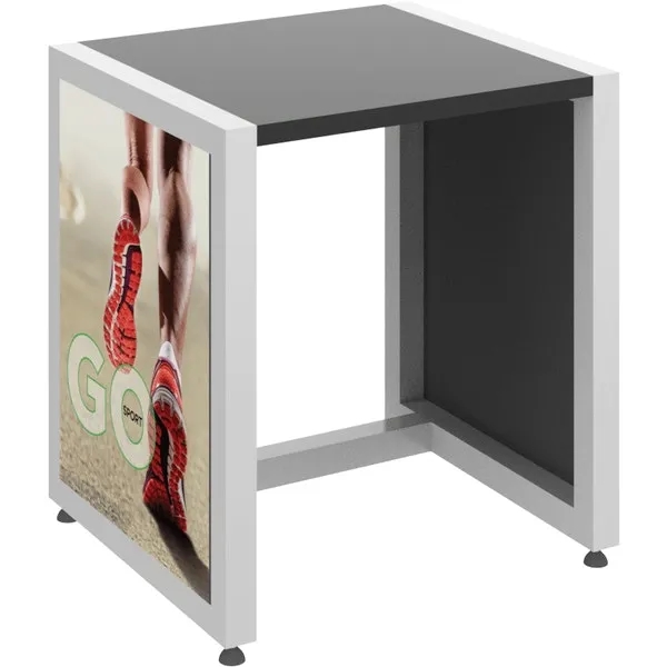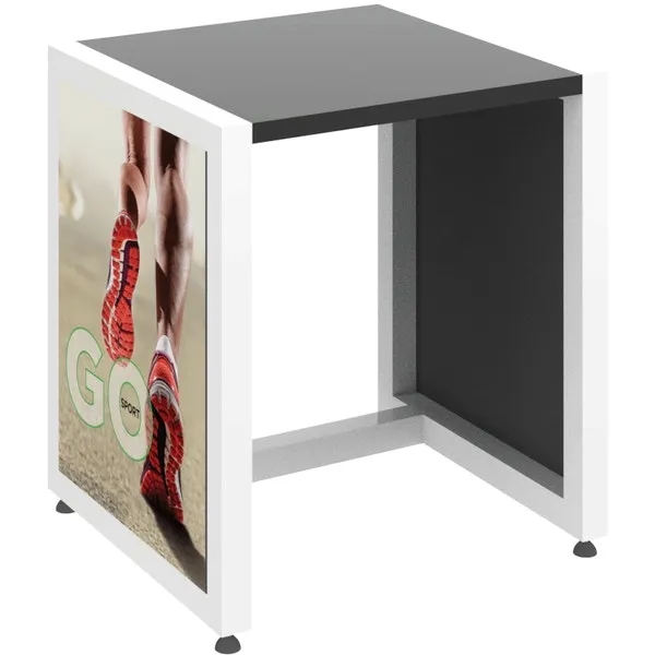 Create the perfect display using this nesting table. Measuring 27″ x 30″ x 24″, this item includes a wooden tabletop and can be used alongside SEG push-fit fabric graphics to show off your brand and messaging. In addition, the sturdy metal frame provides both support and stability. You’ll love that this product effortlessly slides under the Nesting Table 03. Consider including your logo, brand name, or message using our customization options. Expand your reach when you order today.