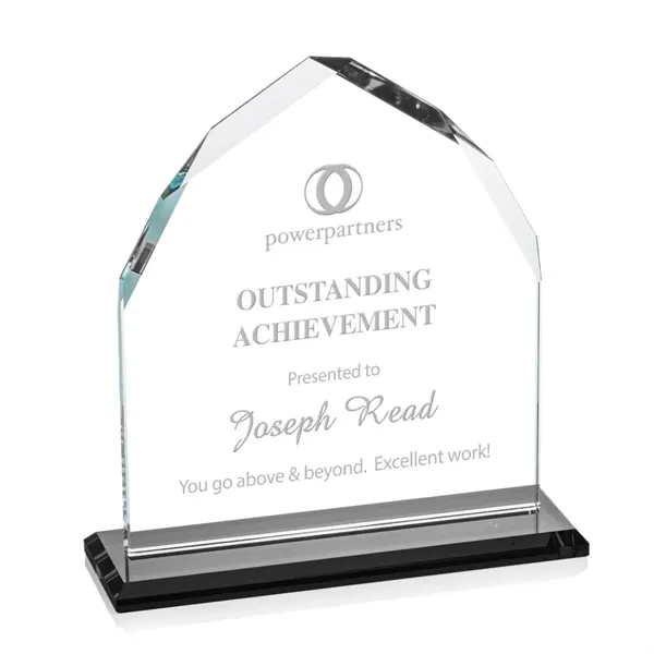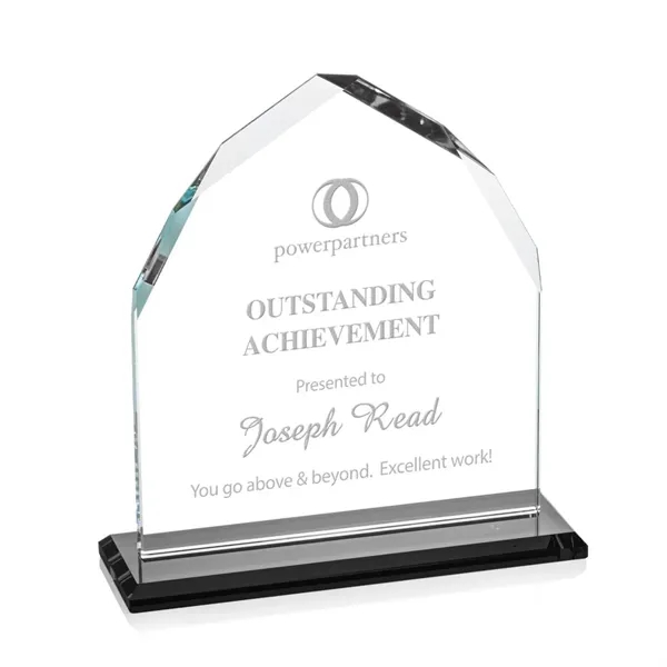 The Montibello Award features an exquisite Starfire upright with interchanging front and back facing bevels, mounted on a beveled ebony Starfire base to create a striking award.