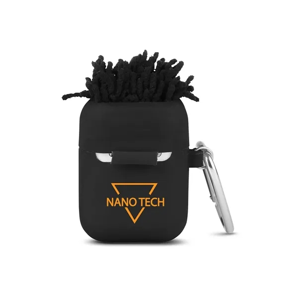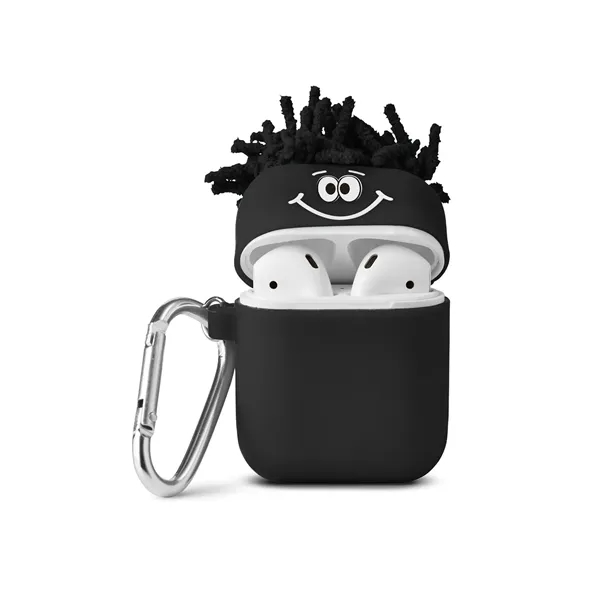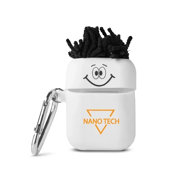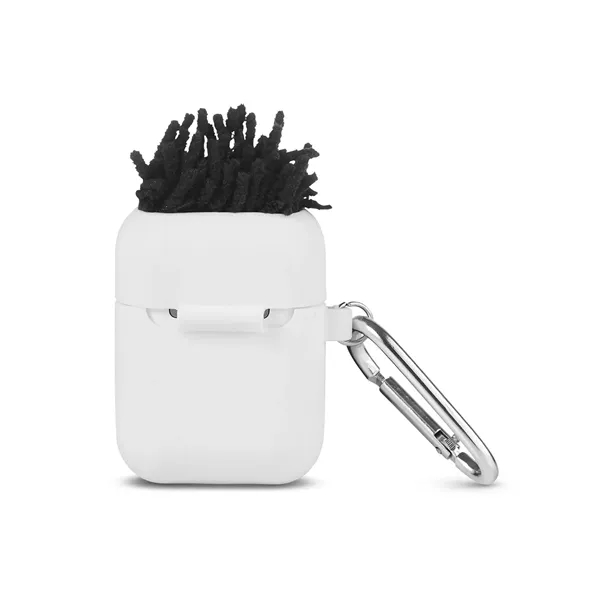Silicone skin/case with Aluminum carabiner featuring our exclusive MopToppers® face and soft chenille hair. Designed to attach to backpack, purse or belt loop so you always keep tabs on your wireless earbuds. Long-lasting microfiber hair functions as a screen cleaner. Carabiner measures 1.675"w x 1"h x 0.125"d.