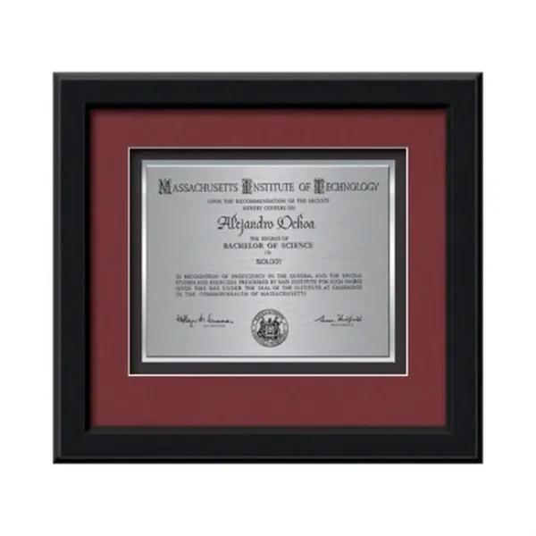Commemorate a milestone achievement with Waterleaf Studios' Certificate collection. Honor years of service, display diplomas, service awards, company mission statements, mergers & acquisitions or extraordinary achievements with these impressive statements of accomplishment. Your words of recognition are reproduced using our polished edged Double Plated TexEtch process with your choice of 2 standard mattes and framed in our museum quality Myriad molding.