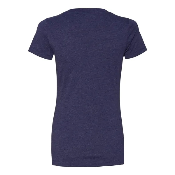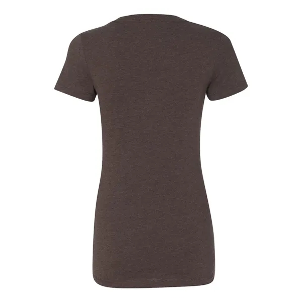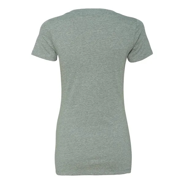 Next Level Women's CVC Deep V-Neck T-Shirt ul)4.3 oz./yd2, 60/40 combed ringspun cotton/polyester, 32 singles. Fabric laundered. Set-in CVC 1x1 baby rib collar. Side seams with feminine curve. Tear away label.