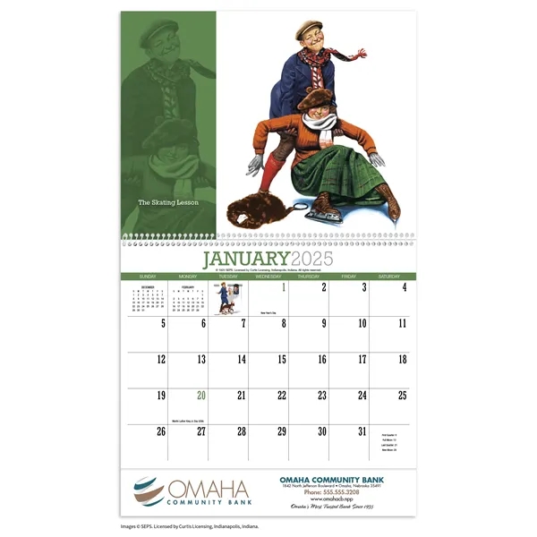Norman Rockwell Art with a 13 month pad in full-color. Quality, recycled gloss stock. UV coated front cover. The FSC® label means that the materials used for this product come from well-managed FSC®-certified forests and other controlled sources.