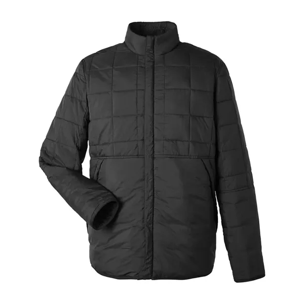 North End Unisex Aura Fleece-Lined Jacket ul)Body: 1 oz./yd2 (US), 1.7 oz./L yd (CA), 100% recycled nylon. Lining: 100% polyester boucle sweater fleece in top, 100% polyester taffeta in sleeves & lower Body. Insulation: 4.0 oz/yd2, 100% polyester UTK SubDown™ fill. Water-repellent, water-resistant. Storm placket with top and bottom snap closures. Center front coil zipper with cord toggles. Inside zippered security pocket. Lower zippered pockets. EZEM™embroidery access.