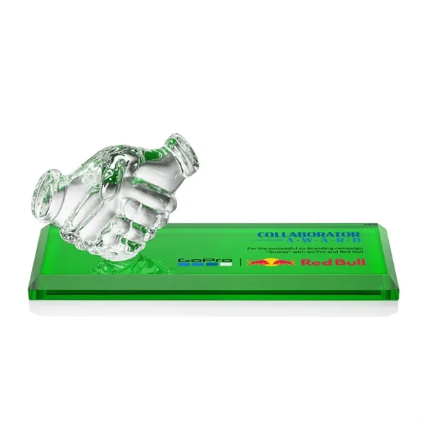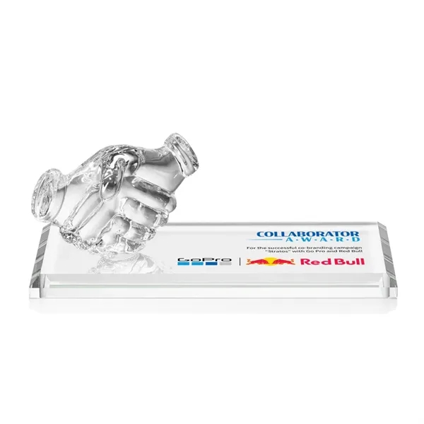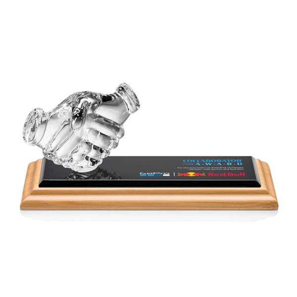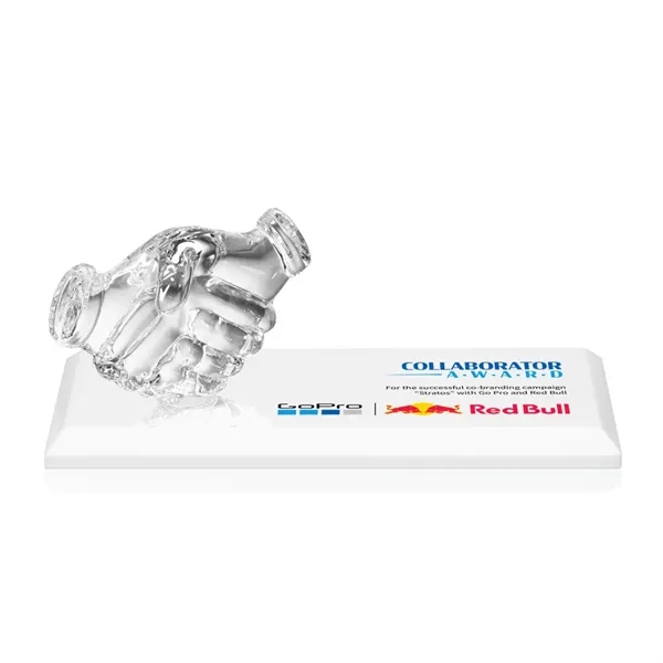 Celebrate teamwork, partnership, and shared success with our striking Northam Shaking Hands VividPrint™ Award featuring an Optical Crystal shaking hands symbol. Whether recognizing outstanding business alliances, commemorating milestone achievements, or honoring exceptional teamwork, this award serves as a timeless reminder of the power of collaboration. Mounted on your choice of 10 different bases. Take your artwork to the next level with full-color VividPrint™.