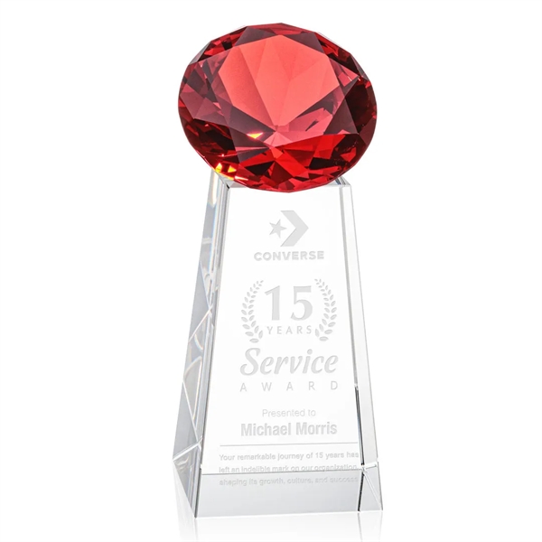 The statuesque and sparkling Optical Crystal Novita Award tapers up from its tall squared base in triumph to present its stunning mounted gemstone. Available in beautiful shades of ruby, sapphire, emerald, amber, and clear.
