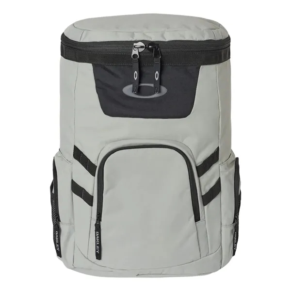 Oakley 29L Gearbox Overdrive Backpack ul)100% polyamide. 100% polyester lining. Water repellent. Fits up to a 17” laptop. Front access stash pocket with organization panel. Top-loading main compartment. Deep side pockets including mesh pocket overlay. Large front external zipper pocket. Sternum and compression straps. Padded shoulder straps and back panel with mesh inserts.