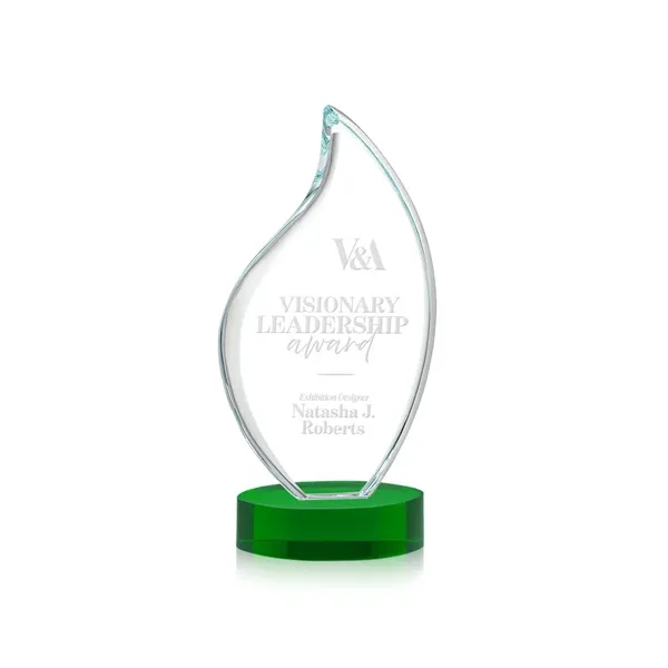 This classic award features a 3/4" thick Starfire Crystal Flame with rounded edges and mounted on an Alberton oval base. An elegant award to recognize a great achievement or momentous event.