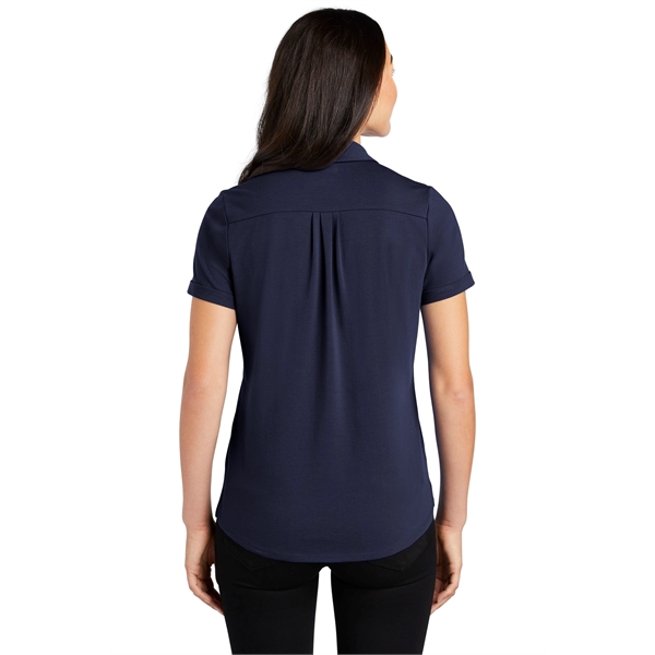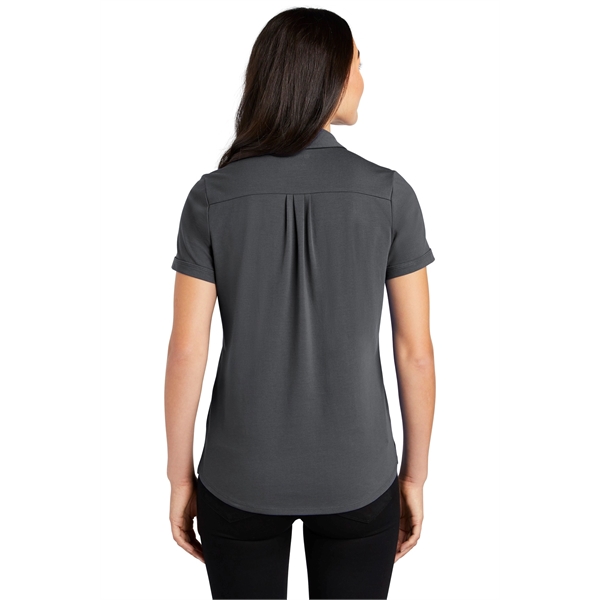 OGIO Women’s Limit Polo. OGIO sets no limits in this easy-moving, moisture-wicking style that features plenty of stretch. 5.6-ounce, 58/38/4 cotton/poly/spandex jersey with stay-cool wicking technology OGIO heat transfer label for tag-free comfort Self-fabric collar with collar stand Open Y-neck placket Back center pleat Set-on, cuffed sleeves Flat matte silicone O heat transfer on left sleeve