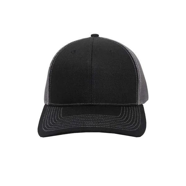 Outdoor Cap Trucker Cap ul)100% cotton. 100% polyester mesh back. structured, six-panel, pro-round. Slight pre-curved visor. Cotton twill sweatband. Contrast construction stitch. Snapback closure. Woven loop label.