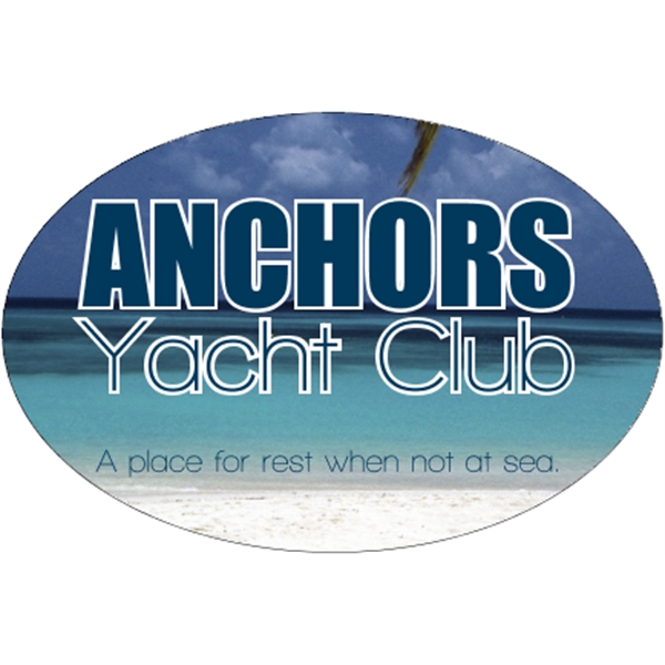 Get years and miles or brand exposure for a budget-friendly price with these custom bumper stickers! Measuring 6" x 4" and made from white vinyl, these oval shaped stickers are suitable for outdoor use and feature pressure-sensitive adhesive that can be removed within 6 months of initial application. Customize each one with a four color process imprint, showcasing a brand name, logo, message and more. A wonderful investment for schools, media groups, political candidates, businesses and organizations sports teams, etc. Invest in yours today!